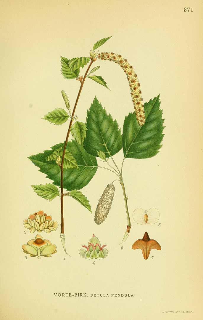 El nombre del género deriva directamente del nombre latino del abedul, y éste a su vez del nombre celta betu. Otras teorías apuntan a que su corteza blanca fue precursora del papel, y el nombre derivaría del sánscrito bhurga, 'árbol en cuya corteza se escribe'. El epíteto pendula, hace alusión a sus flores (amentos) y frutos bialados colgantes (sámaras). Los frutos a pesar de su humilde color marrón purpúreo, se hacen muy visibles en invierno con la caída de las hojas. En primavera sus semillas aladas se dispersan con el viento.