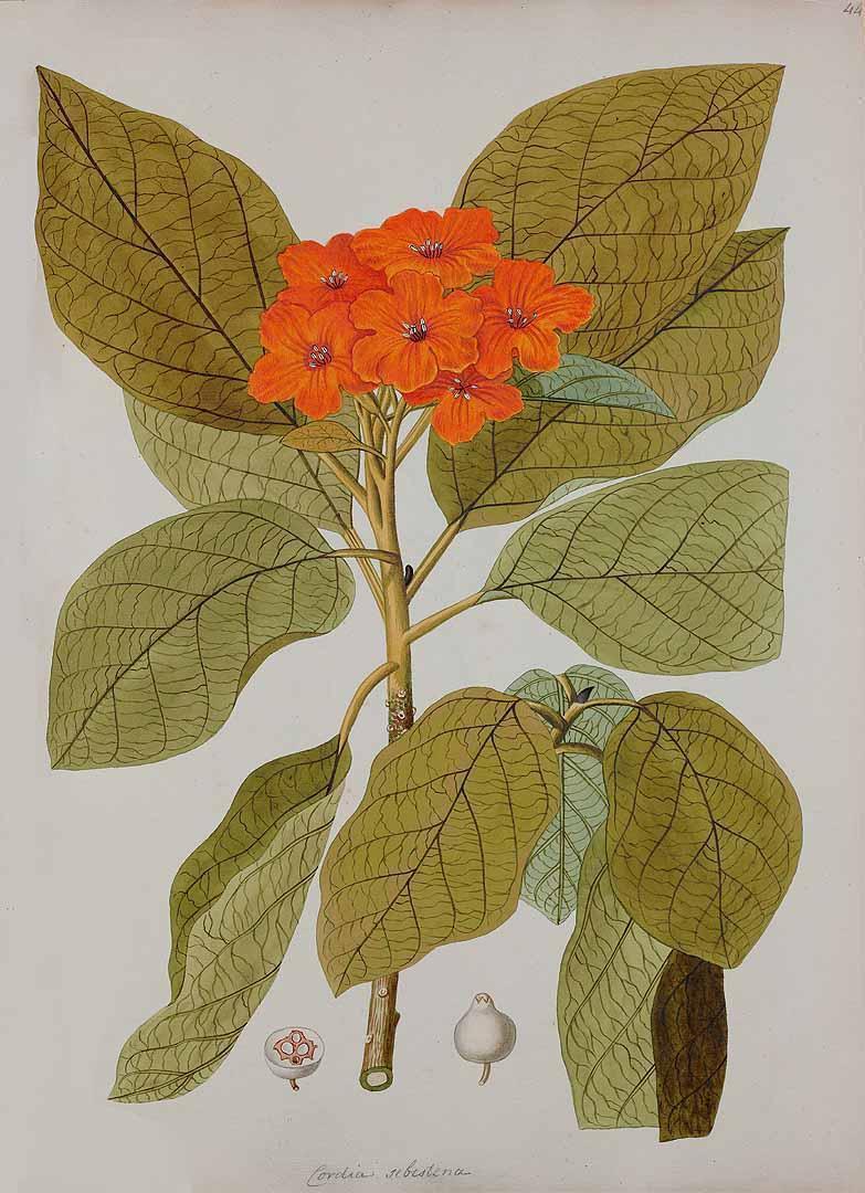 BoraginaceaeTípico del Caribe, es un arbusto, a veces árbol, que a pesar de sus llamativas flores de color naranja intenso, tiene un uso ornamental limitado por sus requerimientos climáticos, necesitando climas muy suaves para su desarrollo. Sin embargo, en condiciones adecuadas, puede florecer todo el año.