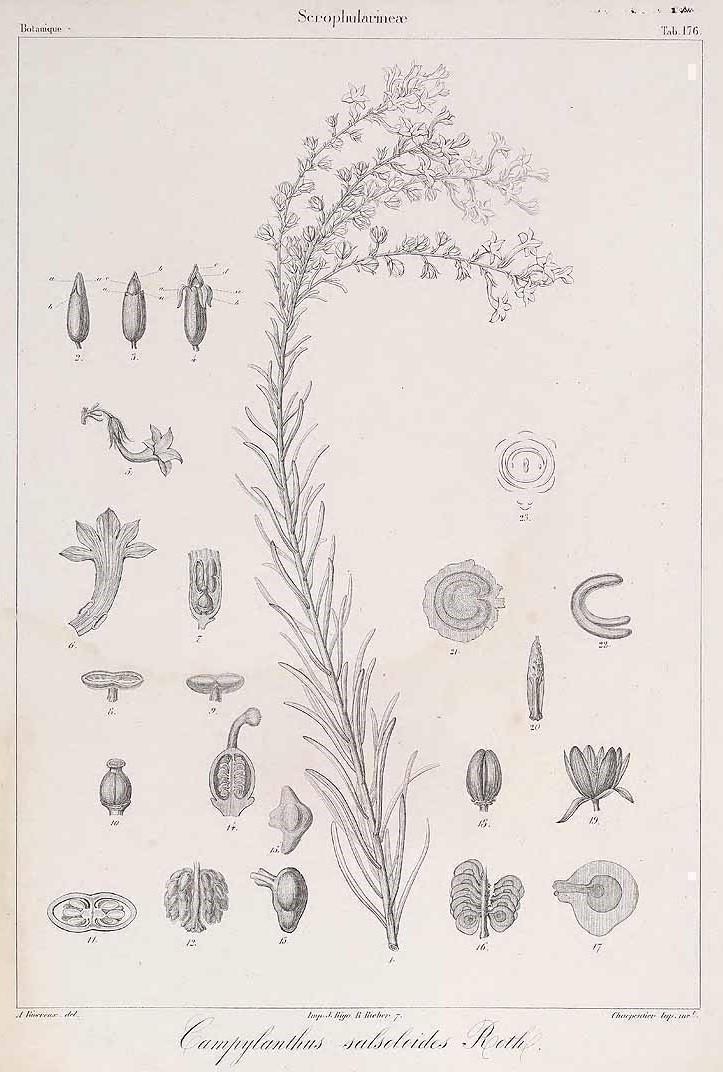 El Campylanthus salsoloides, romero marino o palillo, es un endemismo canario protegido que presenta dos variedades: la variedad salsoloides y la leucantha, que describió Sventenius, creador del Jardín Canario situado barranco arriba.