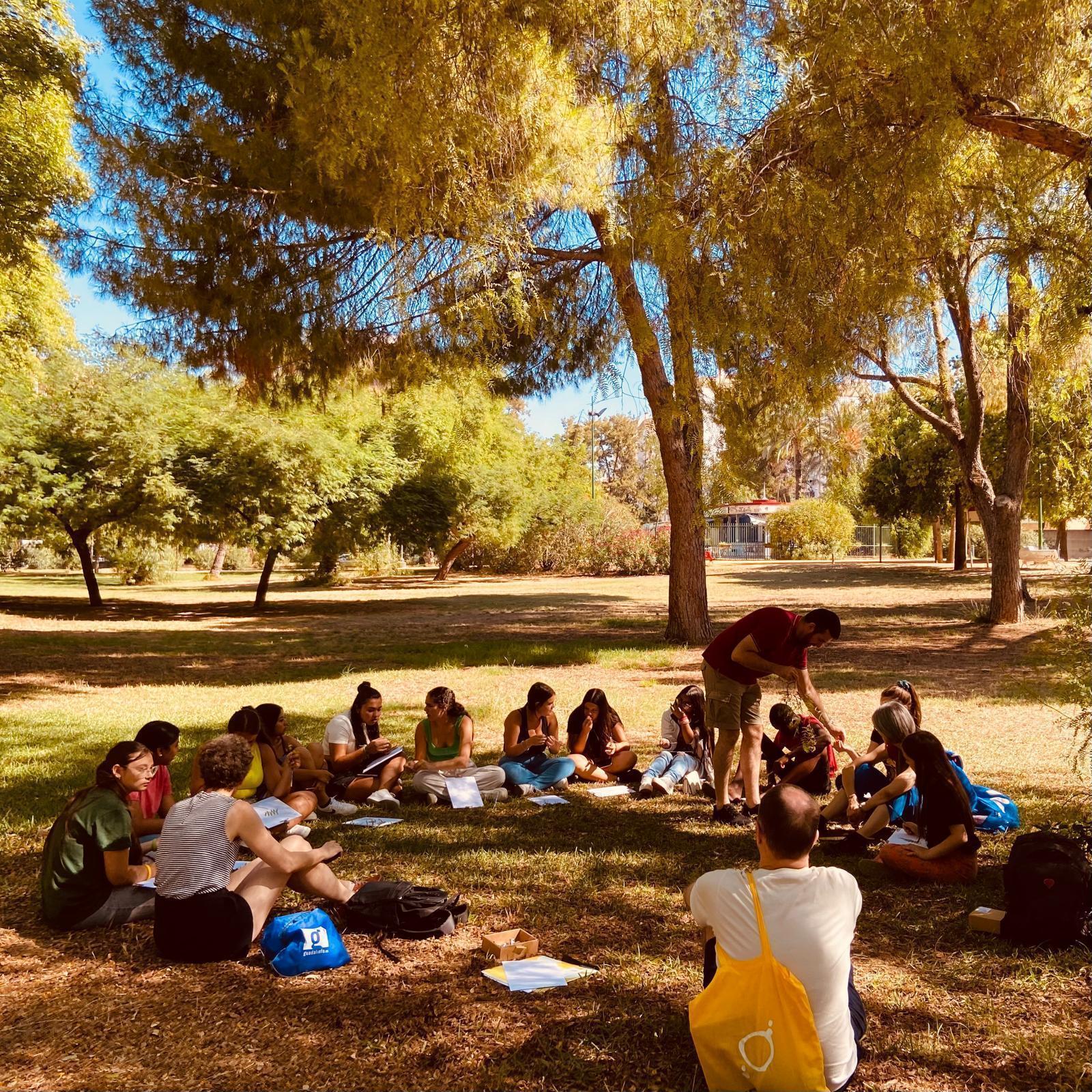 En la primera jornada recorrimos el Parque Amate, donde crecen las plantas que componen el perfume: naranjo, molle, rosa, eucalipto, romero o cedro. Guiados por su aroma, recolectamos muestras de todas ellas para después detenernos a dibujar sus márgenes concretos con detenimiento. Para ello utilizamos diferentes técnicas, como el dibujo al natural o la transposición con papeles de calco.