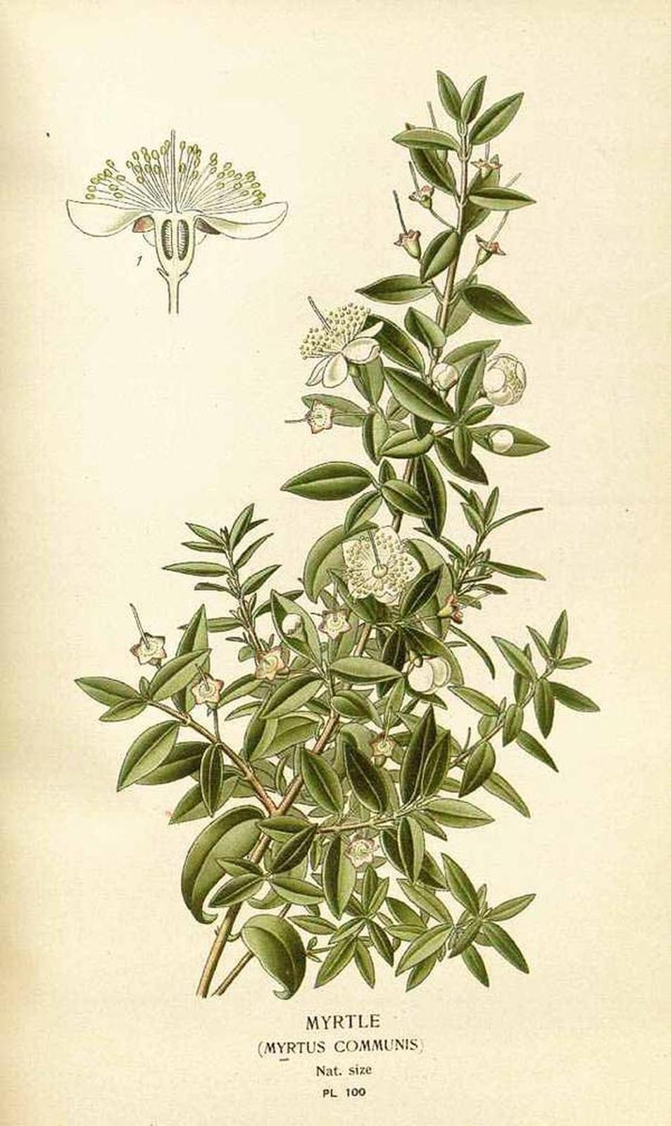 MyrtaceaeEl mirto o arrayán es una planta ampliamente usada ya desde época clásica en el ámbito mediterráneo para elaborar setos. Por autores como Plinio o el poeta Ovidio, sabemos que para los antiguos romanos la planta estaba consagrada a la diosa del amor, Venus. Así, en los ritos nupciales, era frecuente que los esposos fueran coronados con mirto durante el banquete de bodas.