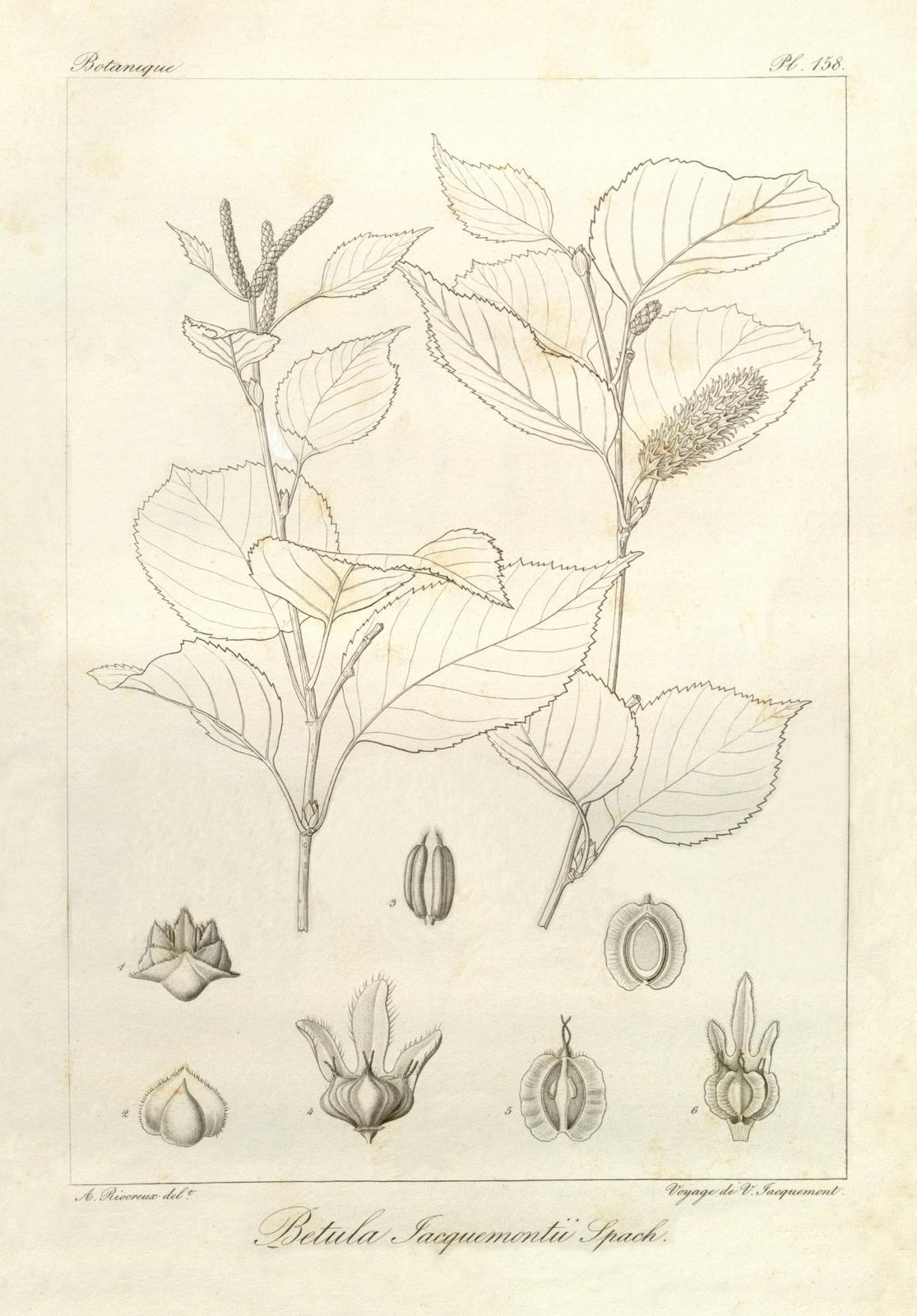 Esta especie fue descrita por primera vez por el botánico escocés David Don a partir de las muestras tomadas por el danés Nathaniel Wallich en Nepal Esta es una de las especies de abedul de corteza más blanca y lisa, que se escama en forma de finas láminas. Láminas que se usan desde antiguo como pergaminos, y sus flexibles varas también han sido muy utilizadas.Procedencia