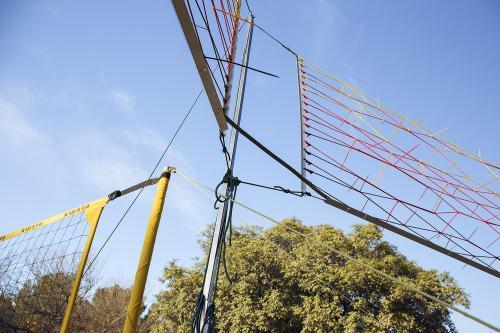 La jornada comenzó tranquila con el montaje de la red durante la mañana. Tras varias rondas de ajustes y muchas manos ayudando, paño tras paño, conseguimos entre todos poner en pie los 85 metros que mide la nueva red multicolor.
