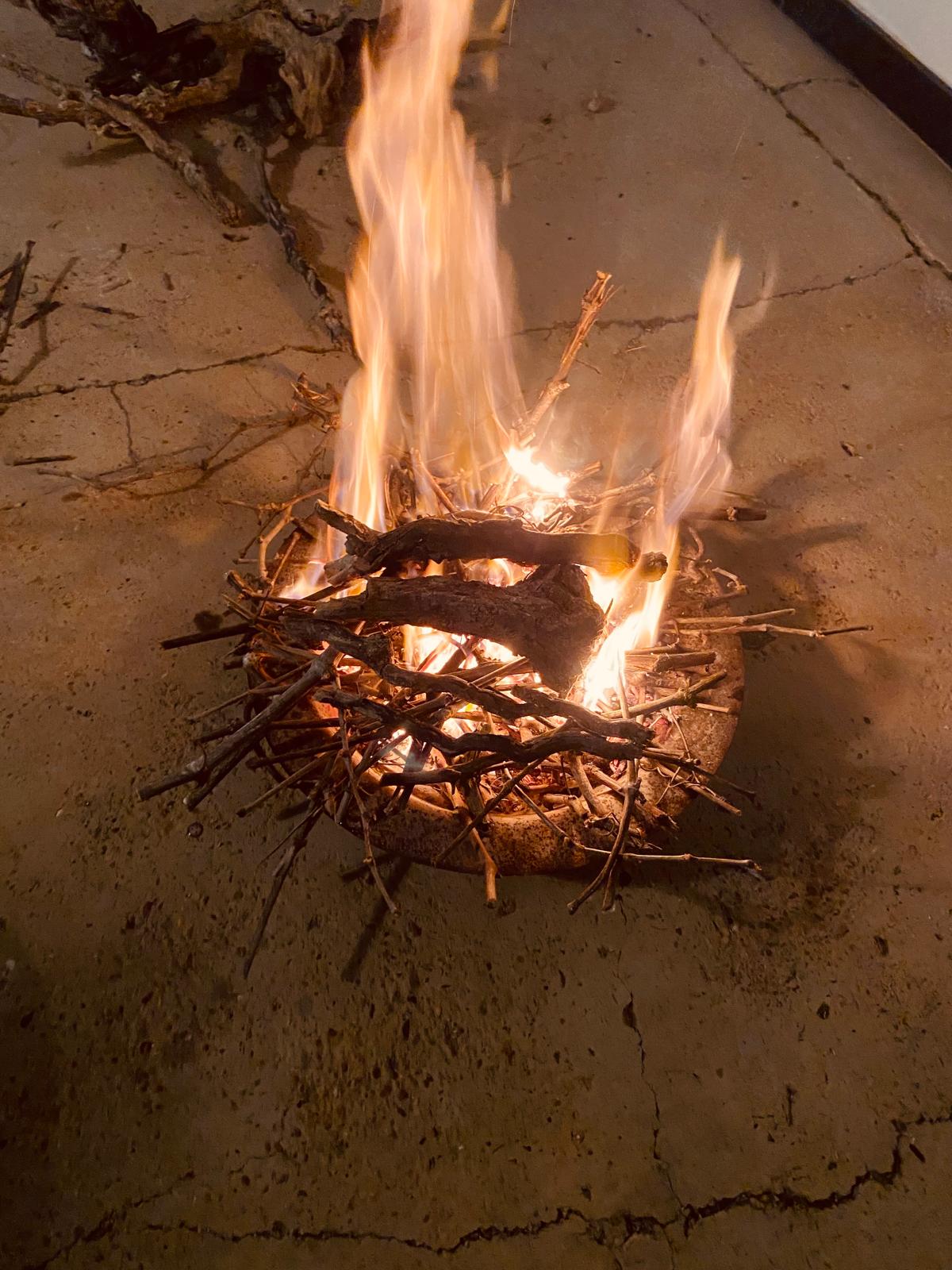 Nada mejor que la sabiduría popular para llevar a cabo la tarea. En un ejercicio de paciencia y detalle utilizamos un brasero tradicional donde fueron quemadas varias ramas de sarmientos de vid.