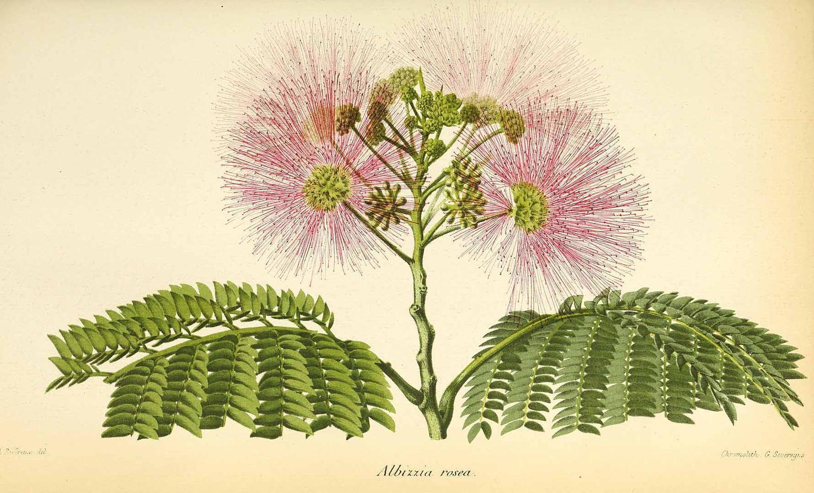 Procedente de Asia subtropical, desde Irán a China y Taiwán, recibe el nombre de Acacia de Costantinopla ya que fue desde esta ciudad por donde llegó a Europa a finales de la primera mitad del siglo XVIII. Hoy es frecuente en jardinería por su vistosa floración y resistencia (especialmente a la sequía). Su pariente Albizia procera, es igualmente usada, pero tiene flores mucho más humildes.Procedencia