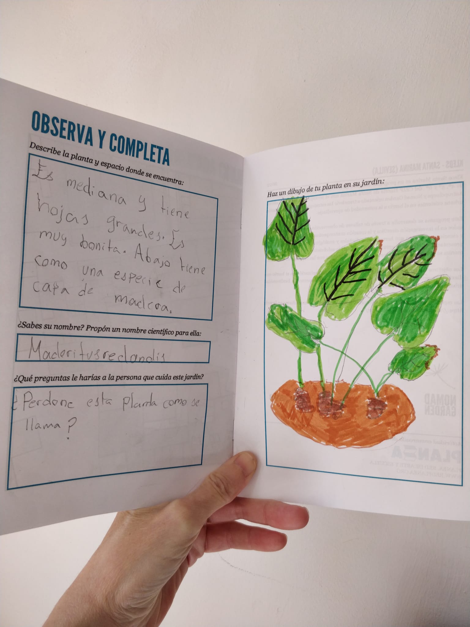 Os hemos repartido a cada uno un cuaderno de exploración. En la portada tenéis que poner vuestro nombre y, si estáis de acuerdo, firmar el manifiesto en el que os comprometéis a ayudar a todos los sevillanos y quienes vengan a este barrio, a enseñarles y darles a conocer las plantas que en él viven…