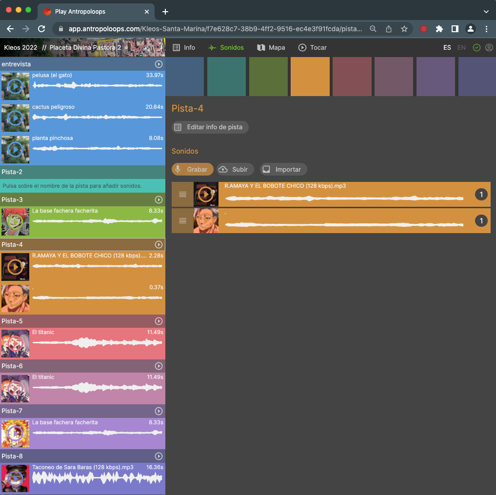 Para la Placeta Divina Pastora el alumnado ha creado tres piezas sonoras con play.antropoloops, trabajando sobre la entrevista a ------, y algunas de las especies de la plaza: