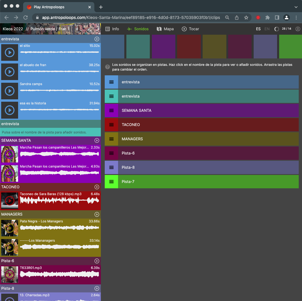 Para el pulmón verde el alumnado ha creado dos piezas sonoras con play.antropoloops, trabajando sobre los recuerdos de Fran y las espécies mediterráneas que se pretenden sembrar en el pulmón verde: