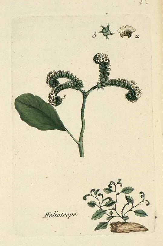 BoraginaceaeEl género Heliotropium (del griego ήλιοτρόπιον), deriva de los términos 'sol' y 'giro', ya que tanto Dioscórides como Plinio el Viejo destacaron como varias especies rotaban acompañando al sol. Es un género amplio, con más de 150 especies aceptadas y varios cientos aún sin resolver; todas ellas herbáceas.