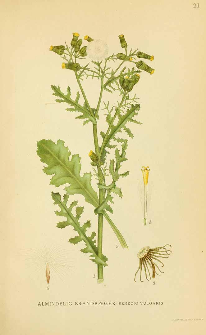 Pequeña hierba erecta de hojas un poco carnosas y profundamente lobuladas, forma capítulos amarillos en la parte superior de los tallos. Es muy característico que las brácteas del capítulo sean de dos tamaños, unas largas y rígidas de color verde amarillento, y las otras muy pequeñas en la base del capítulo y que tienen las puntas negras. Puede estar en flor en cualquier época del año.